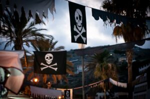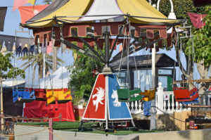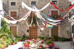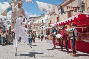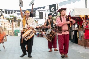 La decoración y la ambientación es esencial en un mercado temático por ello no pueden faltar las banderas, castilletes, pendones, velas….